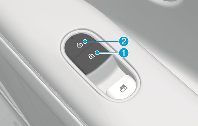 The driver’s and front passenger’s door armrest is equipped with a central door lock switch. The lock switch is indicated by a