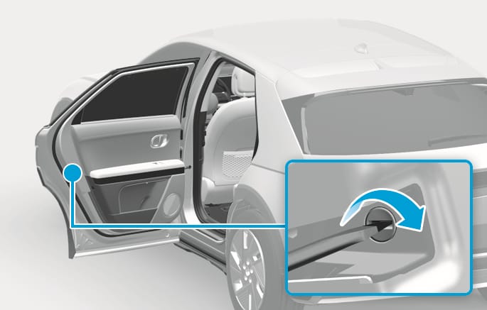 Insert the small blade tool (e.g. screwdriver or similar) into the emergency door lock hole and turn it clockwise for left side door, or turn it counterclockwise for right side door.