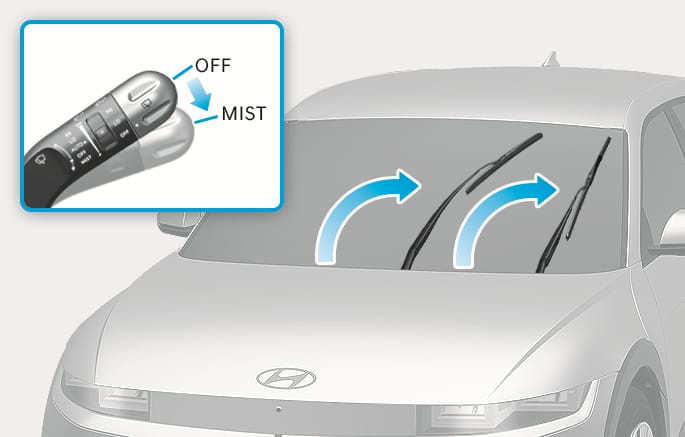 Within 20 seconds of turning off the vehicle, push down and hold the wiper lever to the MIST position for about 2 seconds until the wipers move to the top wipe position.