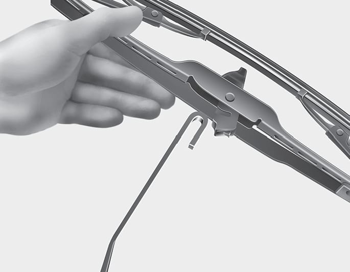If the replacement is complete, put down the wiper arm onto the rear windshield, and turn the vehicle ON and operate the wipers to check the blade is installed correctly.
