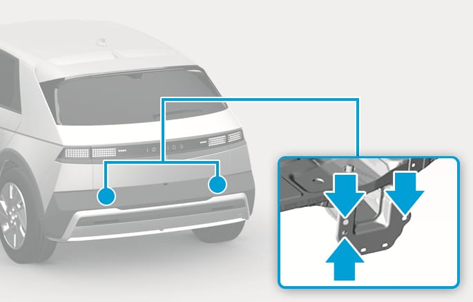 The mounting hole for hitches are located on both sides of the underbody behind the rear tires.