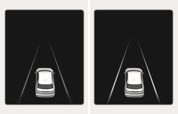 When lane markings (or road edges) are detected, the lane lines on the cluster changes from gray to white.