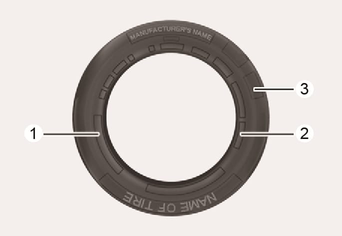 타이어의 경우 제조일 기준으로 6년이 경과되면 자연적으로 노화되기 때문에 사용하지 않았더라도 임시 타이어를 포함하여 새 타이어로 교체해야 합니다. 이때 제조일을 확인하기 위해 타이어의 옆면에 DOT라는 표시를 양쪽면 중 한면에 삽입하도록 되어 있으며 이 표시는 영문 및 숫자로 구성되어 마지막 네 자리를 통해 제조일을 확인할 수 있습니다.