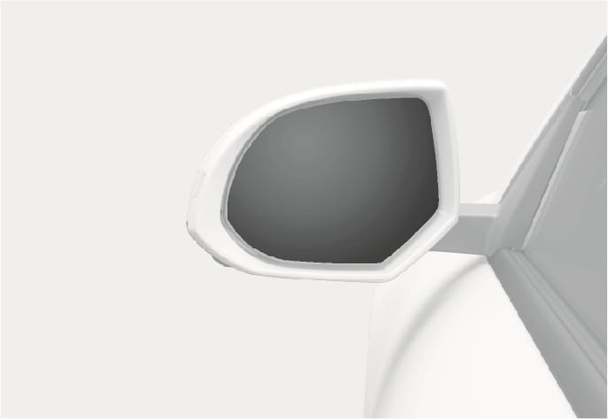 인포테인먼트 시스템의 설정 > 차량 > 라이트 > 웰컴/미러 라이트 > 운전자 접근 시를 선택할 경우, 스마트 키를 휴대하고 차량에 1 m 이내로 접근하면 미러가 자동으로 펴집니다. 단, 모든 도어가 닫히고 잠겨 있어야 합니다.