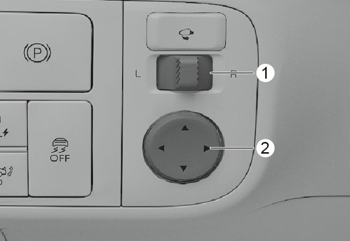 실외 미러 조절 선택 스위치(1)의 위치에 따라 기능이 설정 또는 해제됩니다.