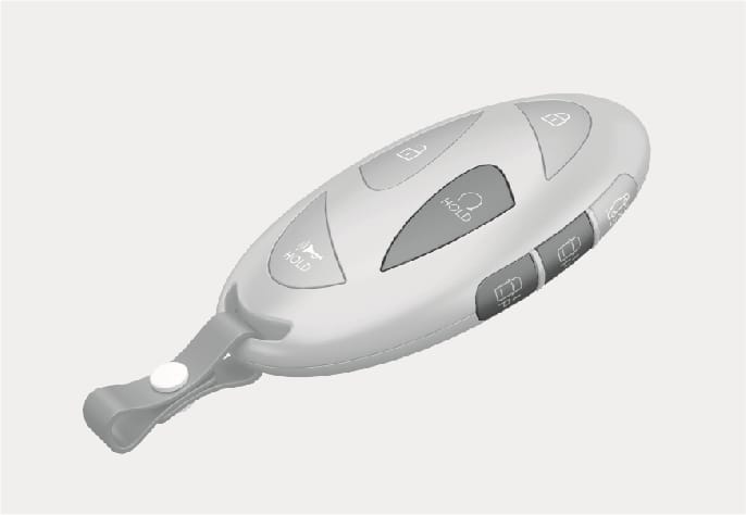 원격 스마트 주차 기능 작동 중 스마트 키의 원격 시동 버튼(