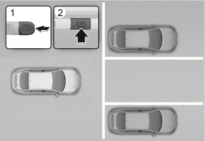 원격 스마트 주차 보조에 의해 직각 주차가 완료된 후에 원격 스마트 주차 보조를 다시 작동했을 때 방법 2의 원격 전/후진 기능을 사용할 수 있습니다.