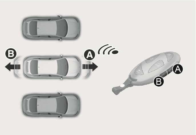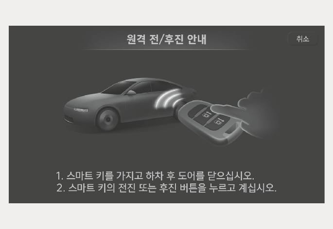 원격 전/후진 기능은 스마트 키를 이용하여 차량 밖에서 원격으로 작동할 수 있습니다.