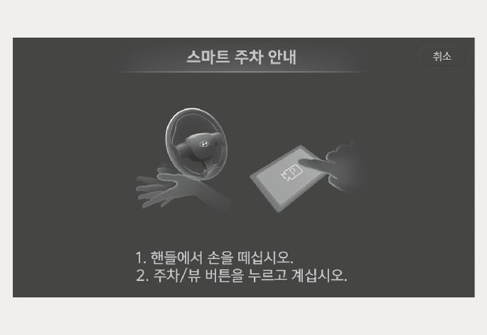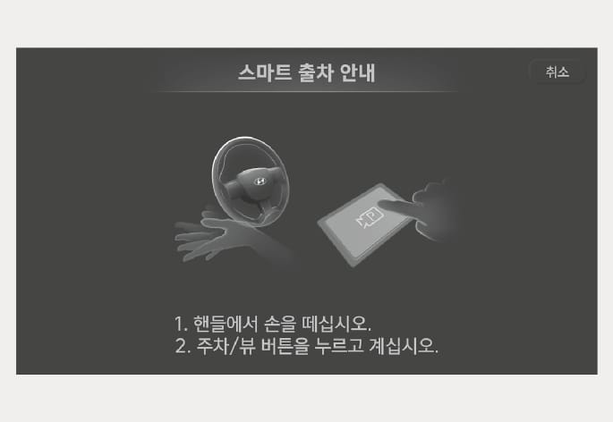 스마트 출차 기능 완료 후에 주위 도로 상황을 판단하여 안전하게 주행하십시오.