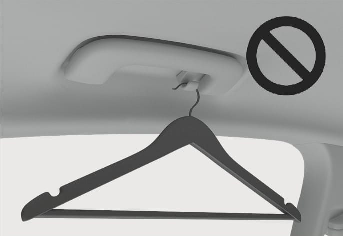 Only hang soft clothing without heavy, sharp or breakable objects in the clothes pockets. In a collision or when the curtain airbag is inflated, the objects could move and cause serious injury.