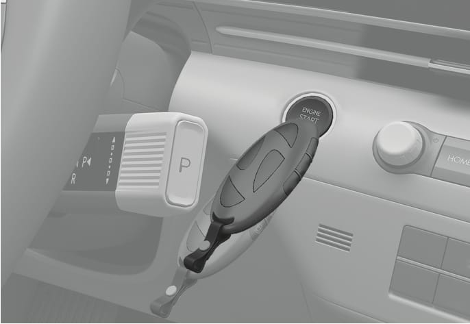Before leaving the driver’s seat, always make sure the gear is in the P (Park) position, apply the parking brake, press the Engine Start/Stop button to the OFF position, and take the smart key with you. Unexpected vehicle movement may occur if these precautions are not followed.