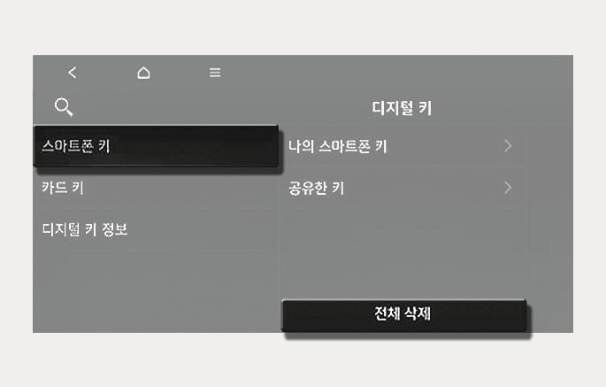 등록된 디지털 키(스마트폰)가 없으면 전체 삭제 항목을 선택할 수 없습니다.
