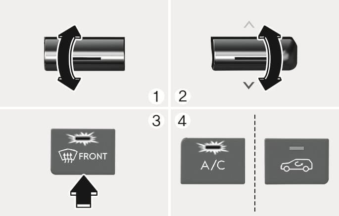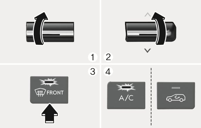 Si el aire acondicionado, el modo de aire exterior (fresco) y la velocidad más alta del ventilador no se seleccionan automáticamente, ajuste manualmente el correspondiente interruptor.
