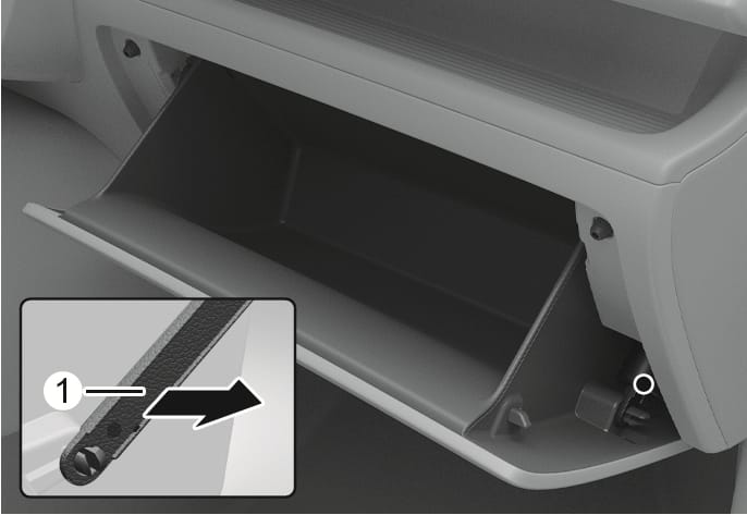 Abra la guantera y extraiga la varilla de soporte (1).