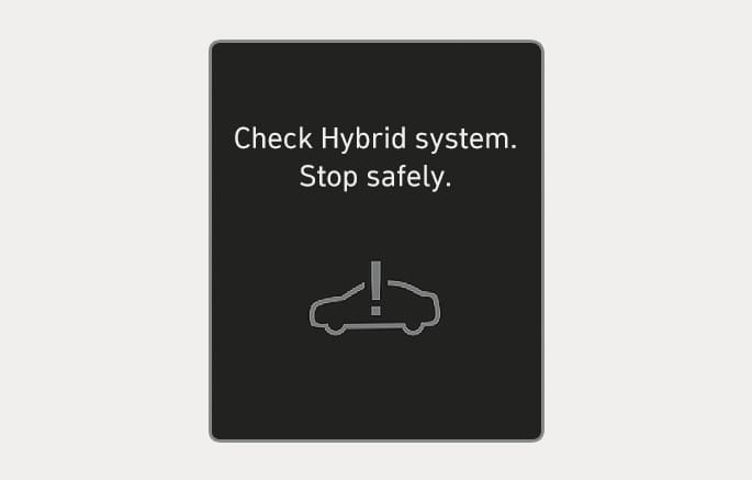 Este mensaje se muestra cuando hay un problema con el sistema de control híbrido. El indicador READY parpadeará y sonará un alarma acústica de advertencia hasta que se solucione el problema. No conduzca el vehículo cuando aparezca este mensaje de advertencia.