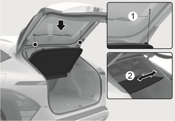 Utilice la cubierta del maletero para ocultar los elementos guardados en el maletero. También puede colocar elementos de peso ligero encima.