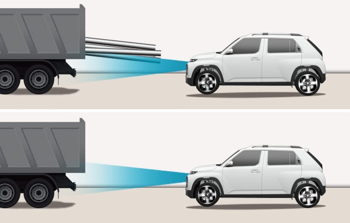 전방 차량 앞에 다른 차량이 정지해 있을 때, 전방 차량이 다른 차선으로 이동하면 전방 감지 센서가 정지해 있는 차량을 인식하지 못할 수 있으므로 주의하십시오.