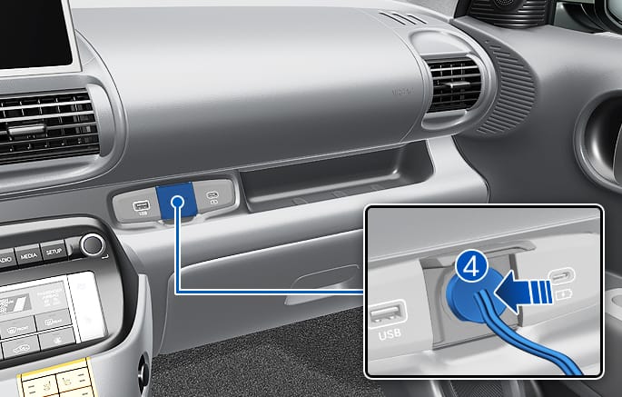 Sluit de bandenmobiliteitsset van een ander voertuig niet aan op het stopcontact van het voertuig. Verschillen in stroomcapaciteit kunnen brand veroorzaken.