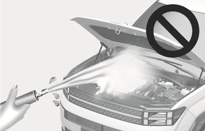 High pressure water may damage front and rear cameras, sensors, vehicle trim, and boots (rubber or plastic covers) or connectors.