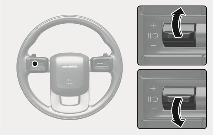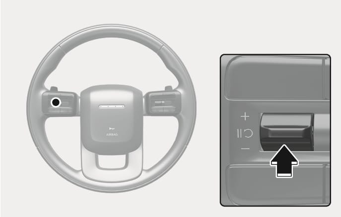 î switch up orï switch down and hold it. The speed will increase or decrease to the nearest multiple of five (multiple of ten in km/h) at first, and then increase or decrease by 5 mph (10 km/h).