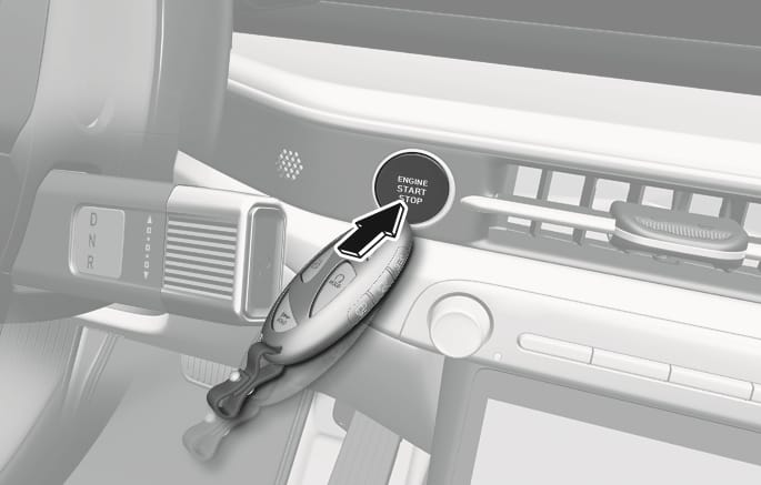 스마트 키의 배터리가 방전되거나 전자기기에 의한 전파 방해가 있어 시동이 걸리지 않을 경우, 스마트 키로 직접 시동 버튼을 누르십시오.