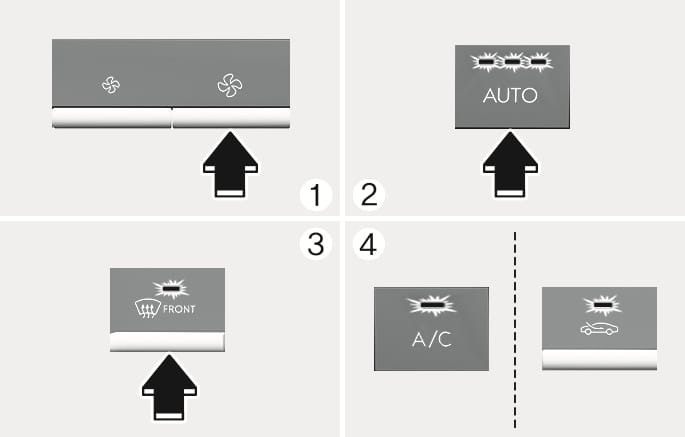 외기 유입이 자동으로 선택되며 외부 온도에 따라 에어컨도 자동으로 작동합니다(유리창 습기 방지 기능이 설정된 경우).
