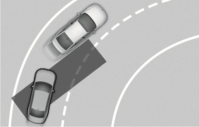 Blind-Spot Collision-Avoidance Assist may not operate properly when driving on a curved road. The function may not detect the vehicle in the next lane.