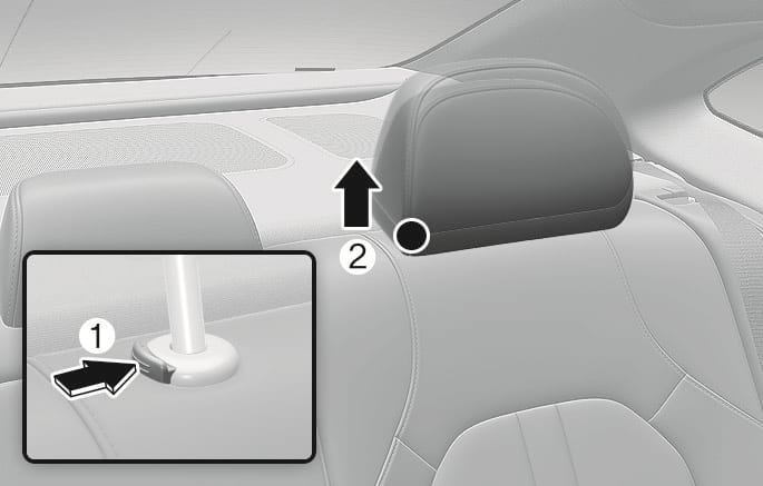 잠금 해제 버튼(1)을 누른 상태에서 헤드레스트를 위로 올려 분리하십시오(2).