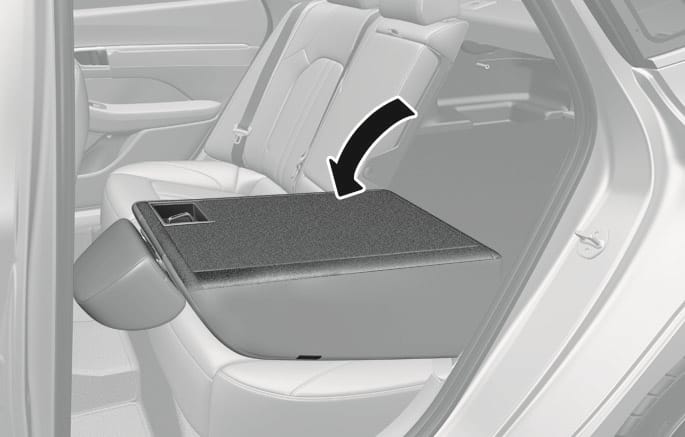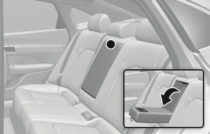 뒷좌석의 암레스트를 내리고 스키 스루 손잡이를 아래로 내리십시오.