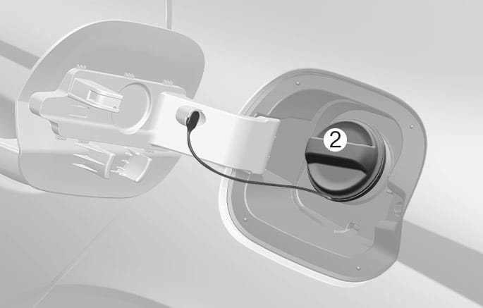 연료 주입구 캡(2)을 시계 반대 방향으로 돌려 여십시오.