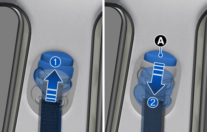 Wenn sich der Sicherheitsgurt nur schwer aus der Gurtrolle ziehen lässt, ziehen Sie den Gurt kräftig heraus und lassen ihn wieder los. Nach dem Lösen lässt sich der Gurt leicht herausziehen.