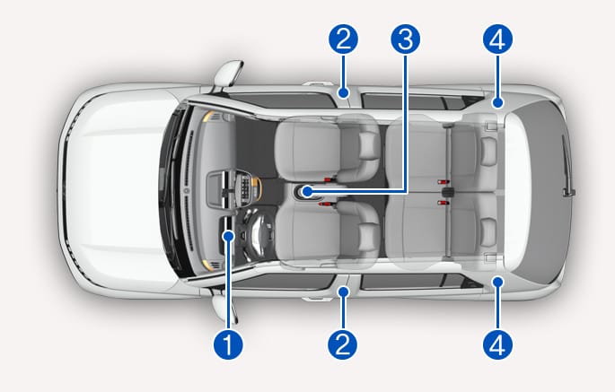 Ihr Fahrzeug ist mit Sicherheitsgurten und Gurtstraffern für den Fahrer-, Vorder- und Hintersitz ausgestattet (Gurtrollen-Gurtstraffer). Die Gurtstraffer stellen sicher, dass die Gurte bei bestimmten frontalen oder Seitenkollisionen straff am Oberkörper der Insassen anliegen. Die Gurtstraffer können bei einer bestimmten Aufprallstärke bei frontalen oder Seitenkollisionen zusammen mit den Airbags aktiviert werden.