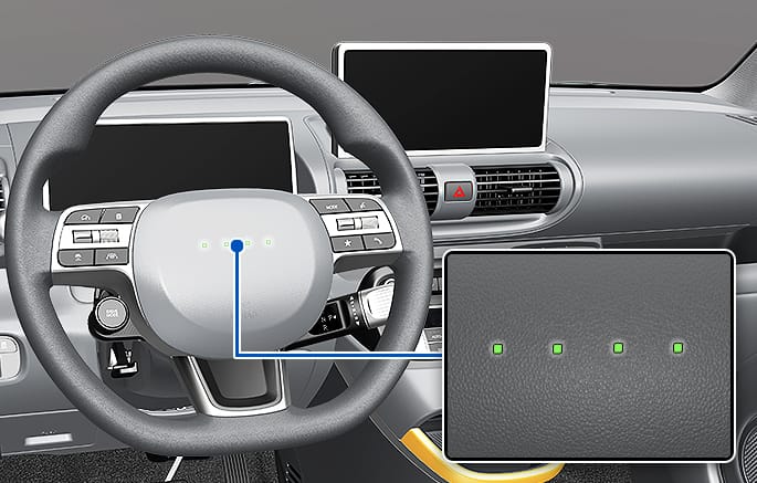 Het oplaadlampje in het midden van het stuurwiel geeft de totale resterende accucapaciteit aan.