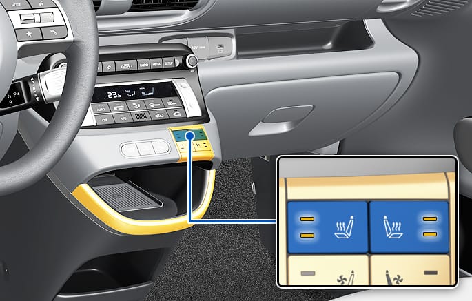 Druk terwijl de auto draait op de schakelaar om de bestuurdersstoel of de passagiersstoel te verwarmen.