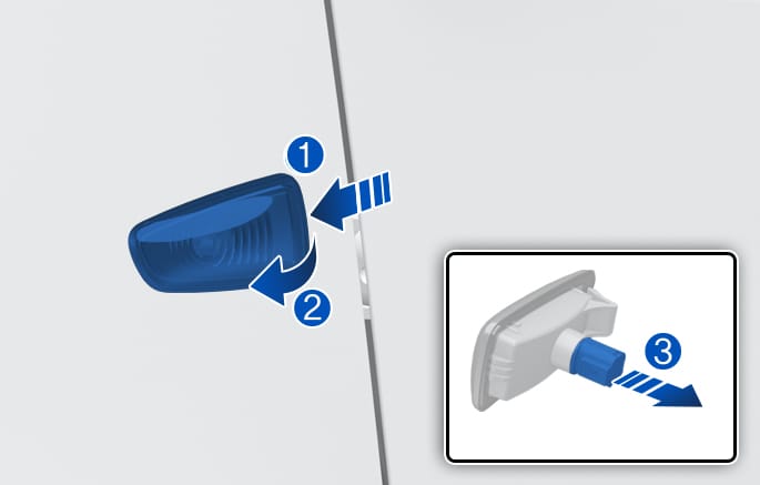 Als de Richtingaanwijzer opzij (1) niet werkt, adviseren wij het systeem door een erkende HYUNDAI-dealer te laten controleren.