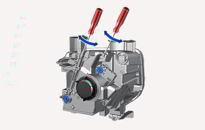 Verdraai de schroevendraaier rechtsom of linksom om de dimlichtbundel naar links of naar rechts te verstellen. Verdraai de schroevendraaier rechtsom of linksom om de dimlichtbundel omhoog of omlaag te verstellen.