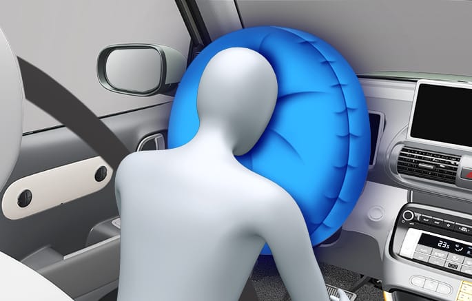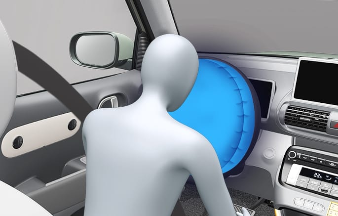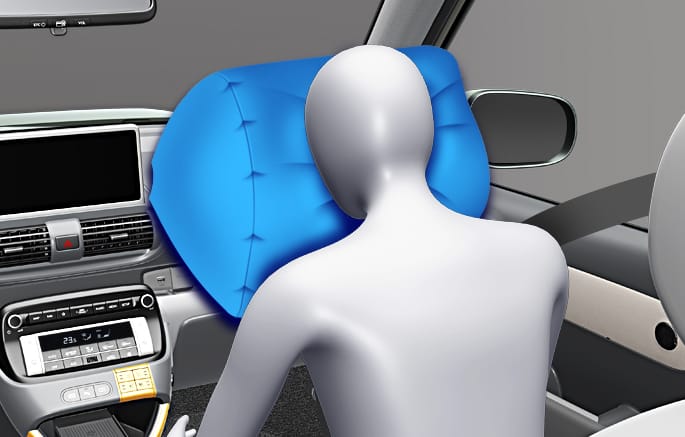 Een geheel opgeblazen airbag vertraagt in combinatie met een juist gedragen veiligheidsgordel de voorwaartse beweging van de bestuurder of de voorpassagier en beperkt zo de kans op hoofdletsel en letsel aan het bovenlichaam.