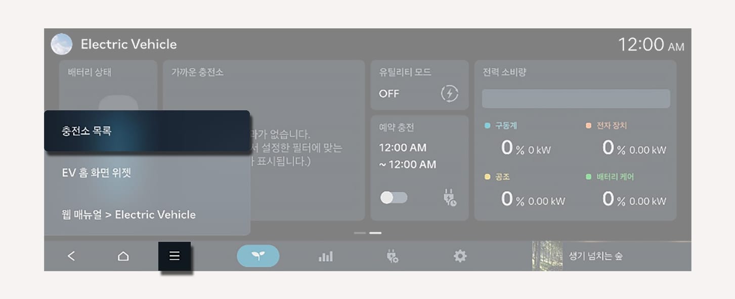 ƺ (메뉴) > 충전소 목록을 선택한 후 충전소 검색 기능을 사용하십시오.