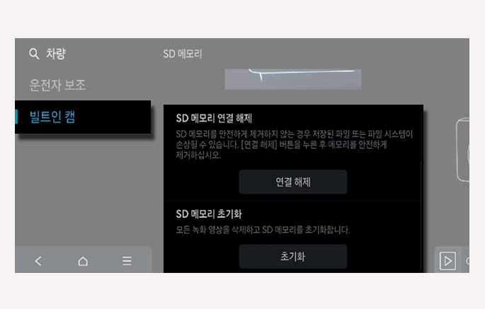 SD 메모리 연결 해제: 차량에서 SD 메모리를 안전하게 제거할 수 있습니다.