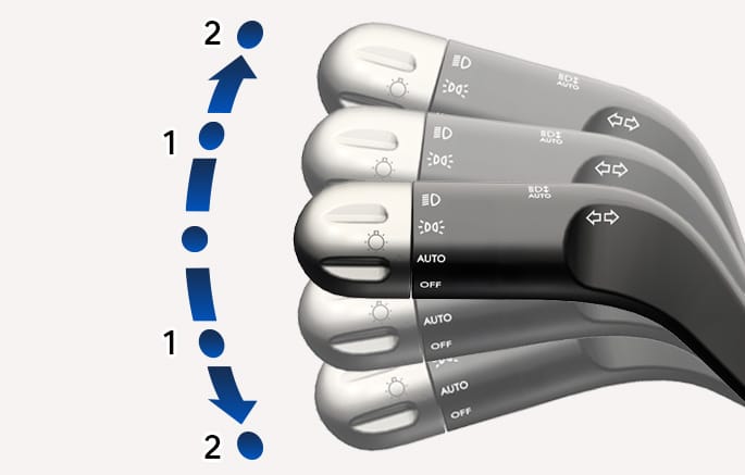 조명 스위치를 위 또는 아래로 살짝 움직이면 사용자가 미리 설정한 횟수만큼 방향지시등이 깜빡인 후 꺼집니다(3회/5회/7회).