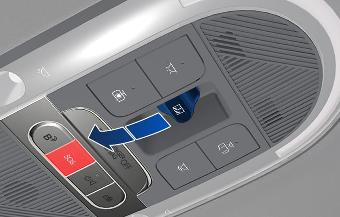 파워 선블라인드와 선루프 글라스가 닫힌 상태에서 스위치를 앞쪽으로 눌러 파워 선블라인드와 글라스가 살짝 한번 움직일 때까지 계속 눌렀다 손을 떼십시오.
