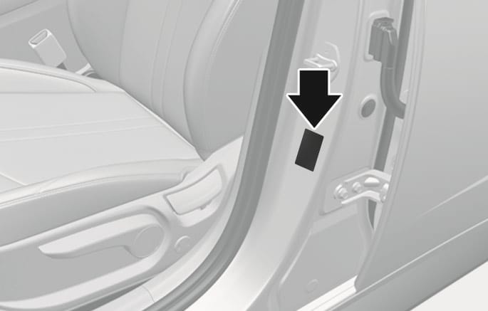 본 차량의 권장 타이어 공기압 정보는 운전석 옆 센터 필러에 부착된 라벨 안에 표기되어 있습니다.