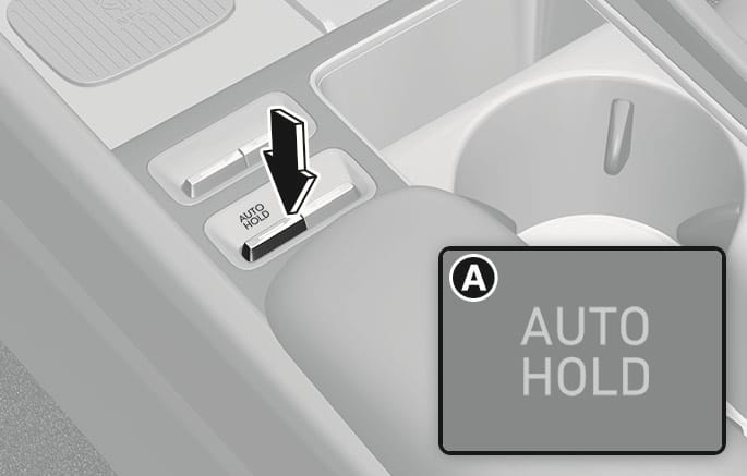 자동 정차 기능이 작동 대기 상태가 되고 클러스터에 흰색 AUTO HOLD 표시등이 켜집니다.