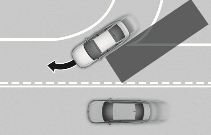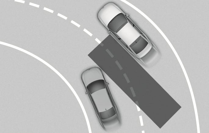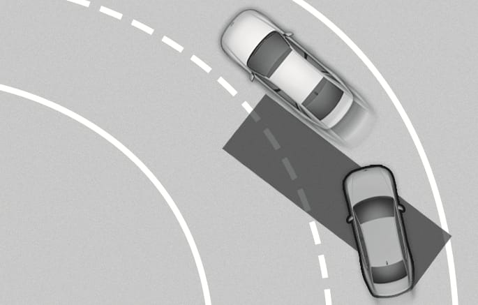 커브가 있는 길에서는 옆 차로에 있는 차량을 인식하지 못해 후측방 충돌방지 보조가 정상적으로 작동하지 않을 수 있습니다.