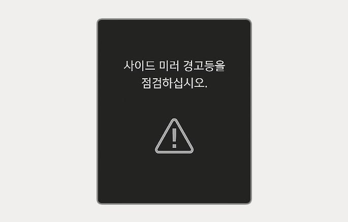사이드 미러(실외 미러) 경고등에 이상이 있으면 클러스터 표시창에 경고문이 일정시간 표시되며 통합 경고등(