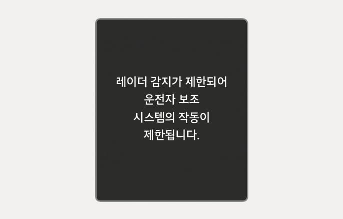인식 센서 경고문이 표시되지 않거나 경고등이 켜지지 않더라도 후측방 충돌방지 보조가 정상적으로 작동하지 않을 수 있습니다.