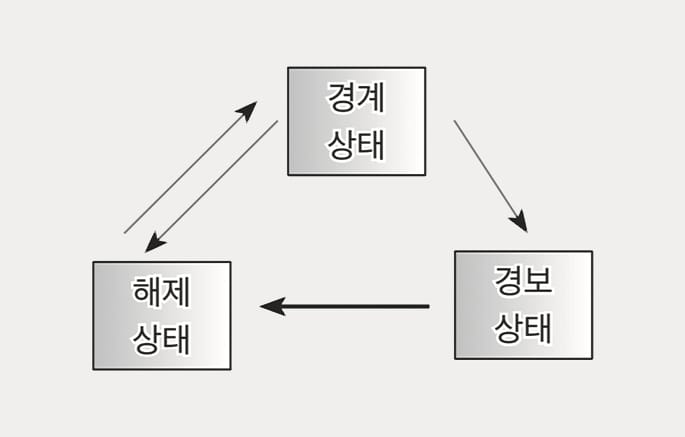 도난 경고 장치가 작동하는 상태에서 스마트 키를 사용하지 않거나 바깥쪽 도어 핸들의 도어 잠금 버튼을 누르지 않거나 도어 잠금 센서부를 터치하지 않고 임의로 도어, 트렁크 또는 후드를 열면 비상 경고등이 깜빡이고 경고음이 울립니다.
