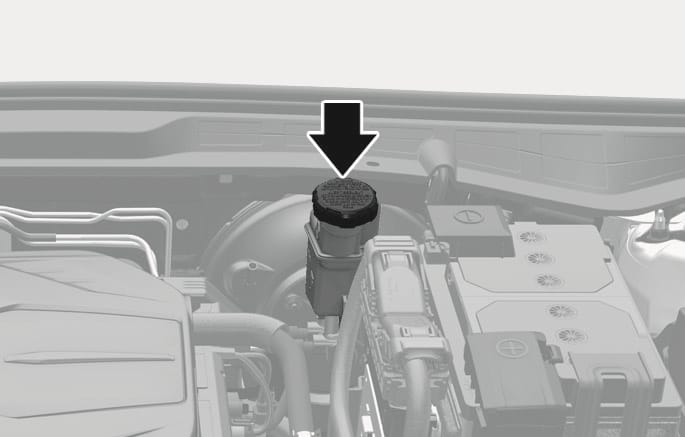 브레이크액 탱크에 다른 성분의 액체(미네랄 성분의 오일, 엔진 오일 등)를 넣지 마십시오. 브레이크 장치 부품이 손상될 수 있습니다.