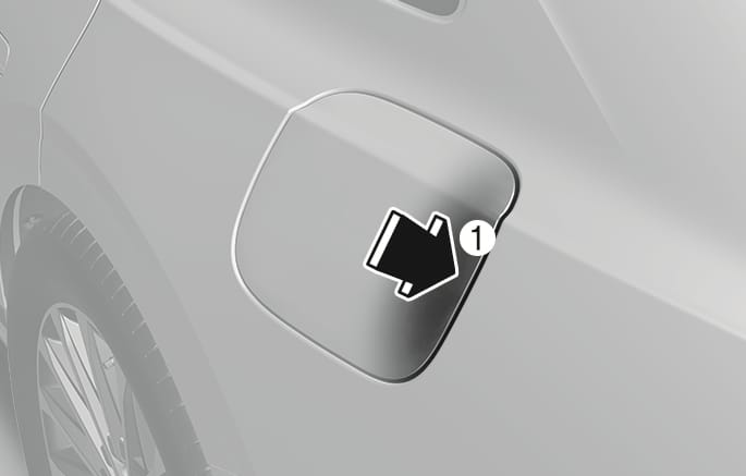 연료 주입구 커버의 오른쪽 끝 중앙 부분(1)이 아닌 다른 부분을 누르면 연료 주입구 커버가 열리지 않을 수 있습니다.