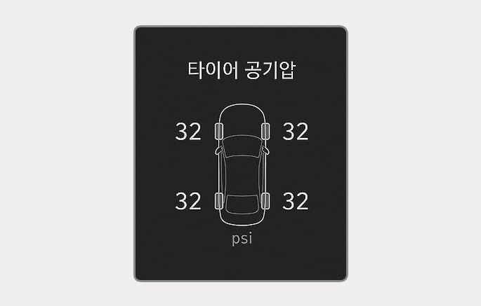 클러스터를 통해서 개별 타이어 공기압을 확인할 수 있습니다.
